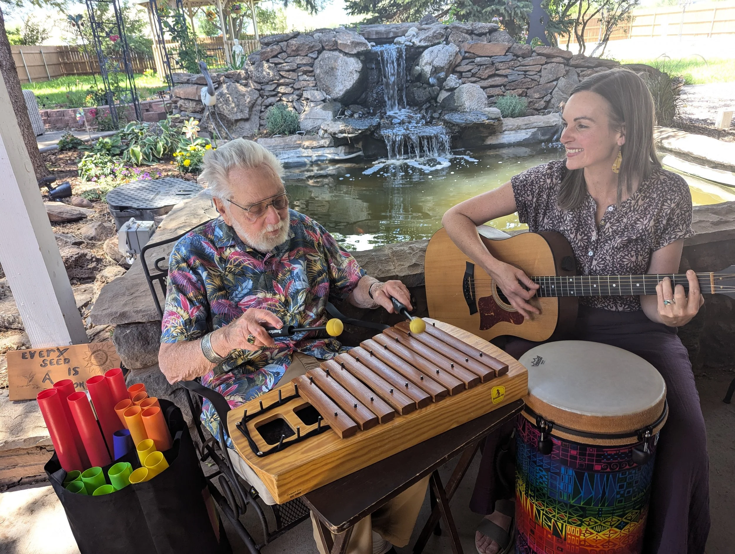 Mountain Health Music offers group and individual music therapy in community and healthcare settings as well as private homes. Specializing in hospice, elder care, memory care, and programs for adults with disabilities, each session is tailored to support emotional, cognitive, physical, and social well-being.